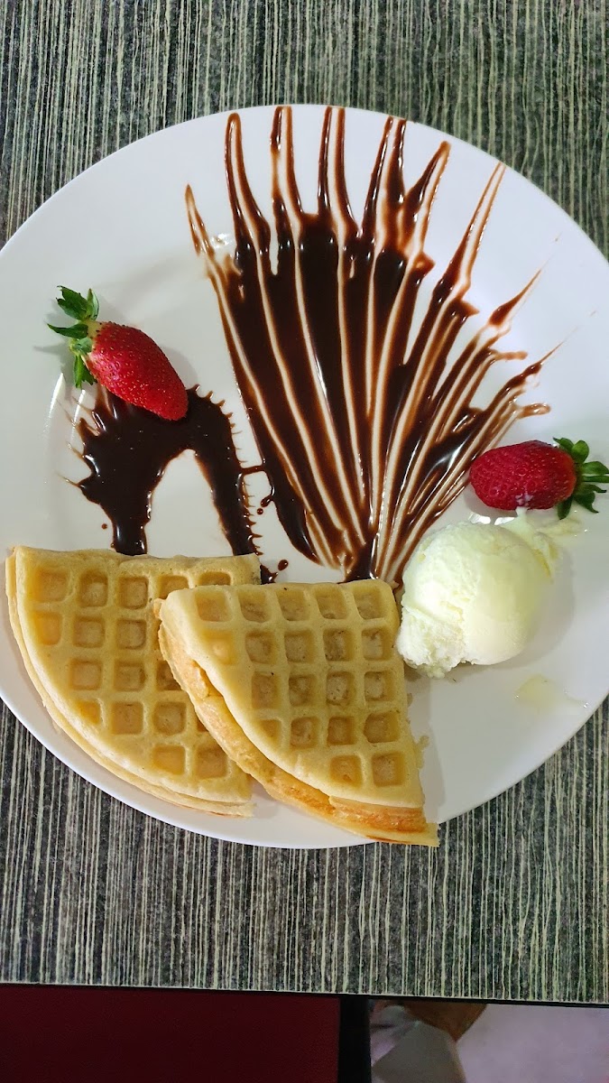 Desserts at Golfers' Cafe are a must-try! The Freshly Baked Apple Pie comes warm and is expertly paired with creamy vanilla ice cream, a sweet finish that terames just right. If you're in the mood for something lighter, the Pancake Fantasy topped with ice cream and bananas is a dreamy, satisfying choice that'll leave you smiling.